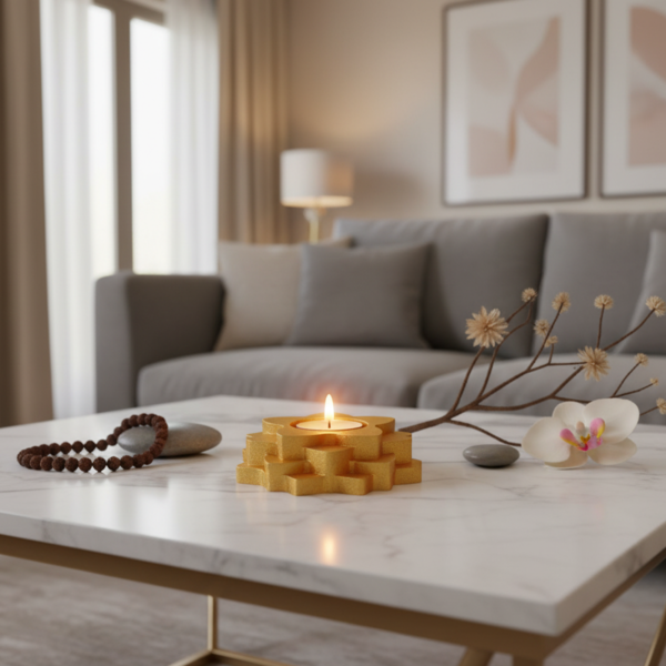 Perfect for living rooms, pooja rooms, offices, meditation corners, and festive decorations, this compact yet eye-catching décor item is designed for versatile everyday use. Whether you want to create a warm candle-lit ambiance, enhance your spiritual space, or style your tabletop with something minimal and modern, this piece adapts effortlessly.