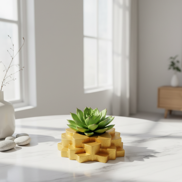 Key Features: Premium-quality eco-friendly gypsum material, modern geometric diamond design, smooth metallic finish, multipurpose use as candle holder, diya stand, dhoop holder and planter, compact yet sturdy construction, ideal for home decoration, festivals and gifting occasions.