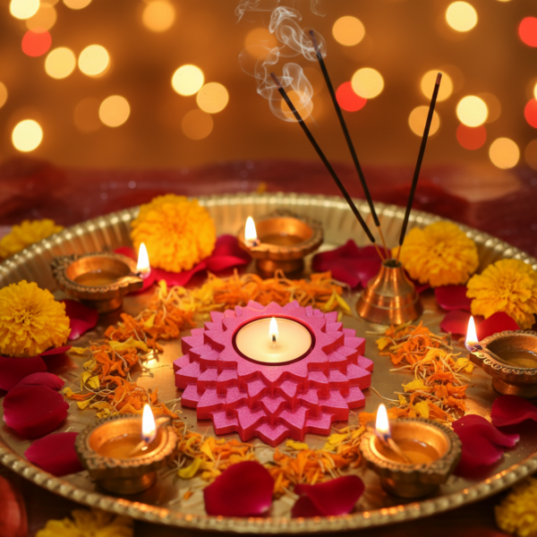 You can use it as a Tealight Candle Holder for Diwali, festive décor, romantic evenings, and gifting purposes. It works perfectly as a Pooja Diya Stand for daily rituals and spiritual settings. It can also be used as a Dhoop Cone Holder to create a calming aromatic atmosphere during meditation or yoga sessions. Additionally, it serves as a Mini Planter for small succulents or indoor plants and can be used as a decorative base for sand wax or gel candles for DIY décor projects.