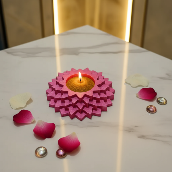 Perfect for living rooms, pooja rooms, offices, meditation corners, and festive decorations, this compact yet eye-catching décor item is designed for versatile everyday use. Whether you want to create a warm candle-lit ambiance, enhance your spiritual space, or style your tabletop with something minimal and modern, this piece adapts effortlessly.