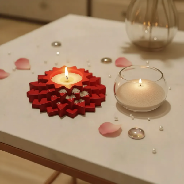 Perfect for living rooms, pooja rooms, offices, meditation corners, and festive decorations, this compact yet eye-catching décor item is designed for versatile everyday use. Whether you want to create a warm candle-lit ambiance, enhance your spiritual space, or style your tabletop with something minimal and modern, this piece adapts effortlessly.